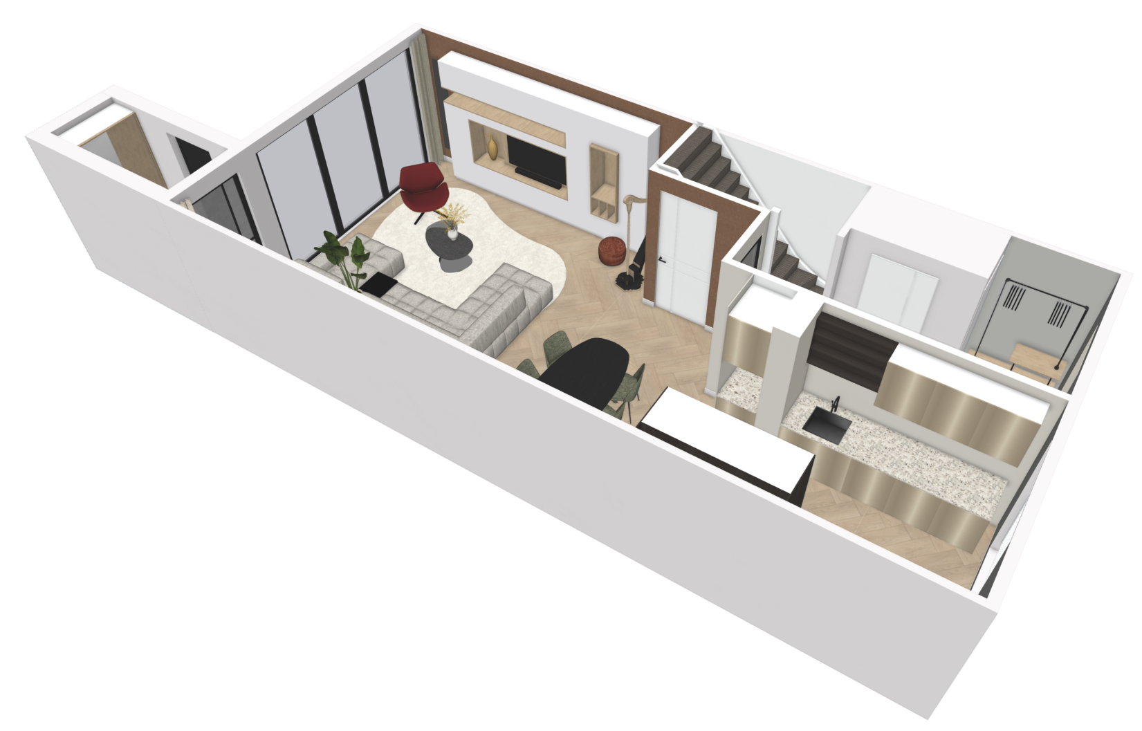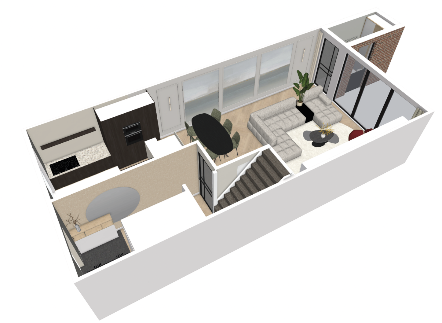 Een slimme en sfeervolle indeling zorgt voor rust, overzicht en optimaal gebruik van de ruimte — juist bij grotere ingrepen. Met behulp van 3D-visualisaties wordt het ontwerp direct inzichtelijk en krijg je een realistisch beeld van het eindresultaat.