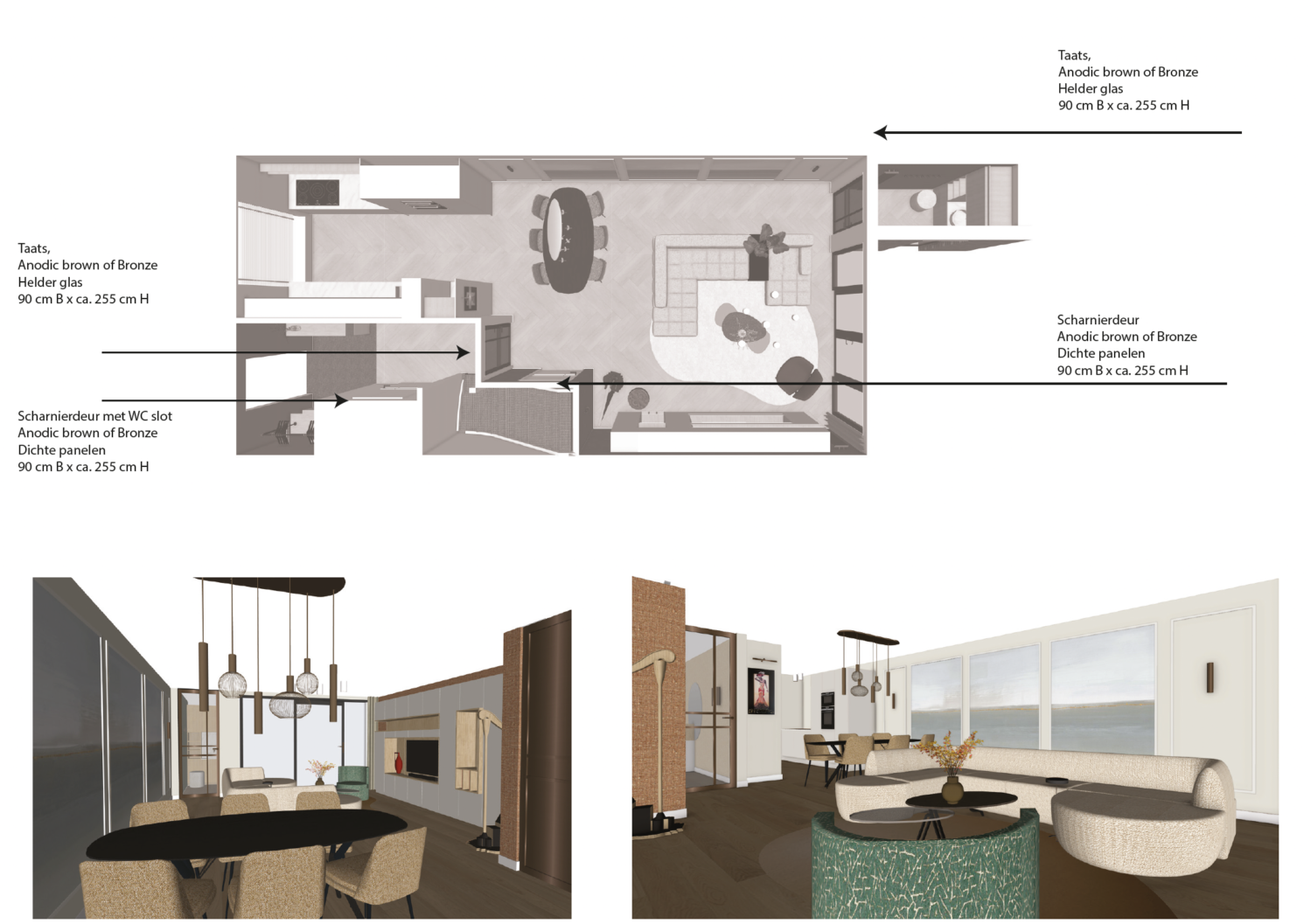 Met een interieurontwerp op maat krijg je direct inzicht in de indeling, uitstraling én samenhang van de woning. Naast realistische 3D-visualisaties ontvang je duidelijke maatvoeringstekeningen, die de stap van ontwerp naar realisatie aanzienlijk vereenvoudigen en zorgen voor helderheid richting aannemers en andere betrokken partijen. Dit maakt het interieurontwerp bij uitstek geschikt voor grotere verbouwingen en herinrichtingen. Of het nu gaat om een compleet vernieuwde begane grond, meerdere woonlagen of een luxe masterbedroom met en-suite: het ontwerp sluit naadloos aan op jouw wensen én op de mogelijkheden van de woning.
