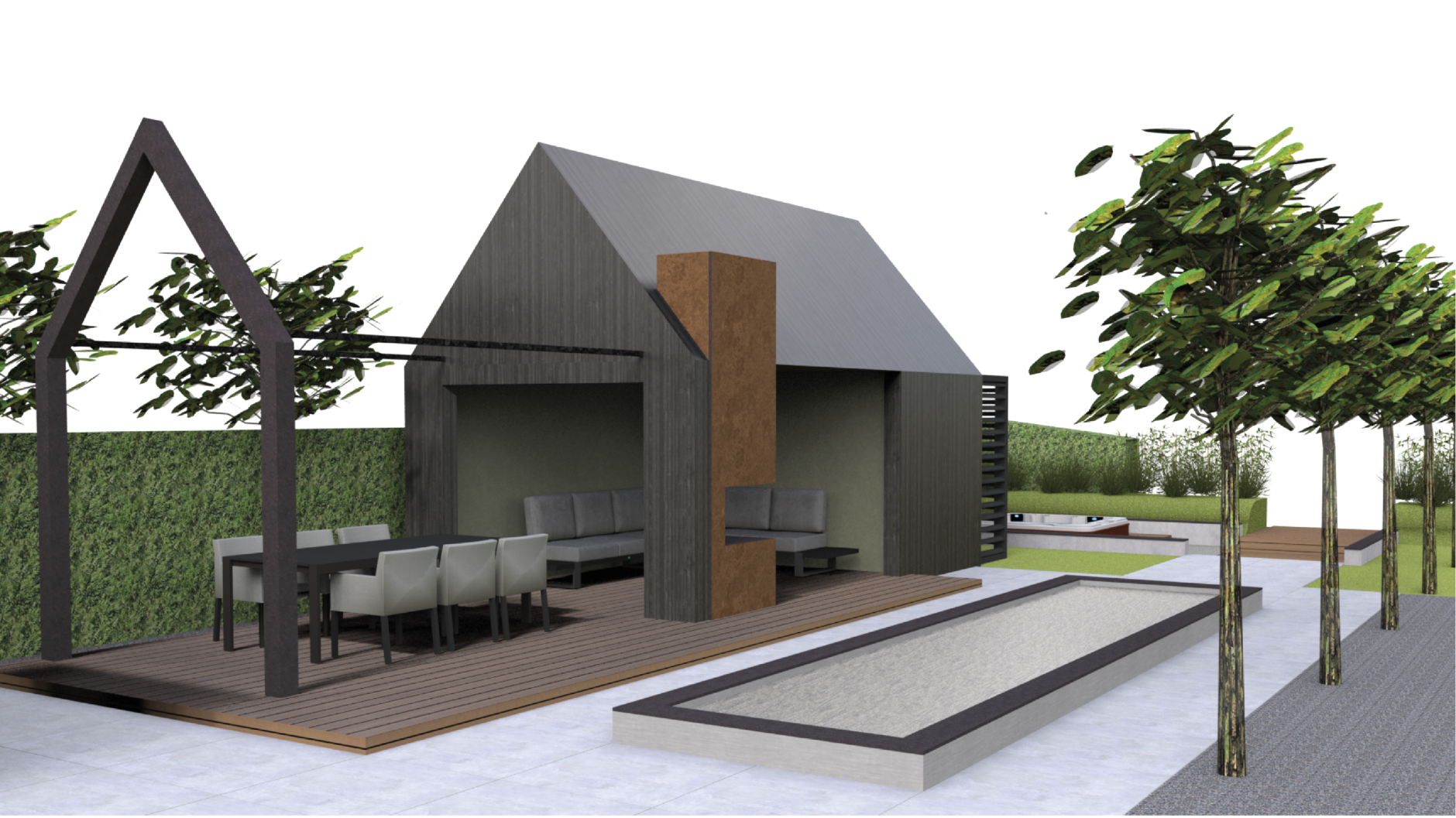 Wat ik meegeef in een tuinontwerp is met name de indeling: paden, overkapping, loungezit, BBQ/buitenkeuken, schuur(tje) en evt. een vijver, zitkuil of jacuzzi. Wil je helemaal los? Dan ontwerp ik ook staalwerk op maat!