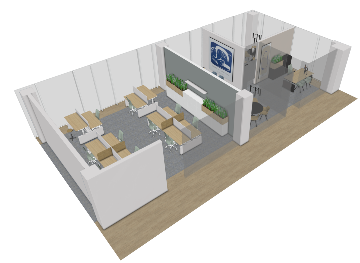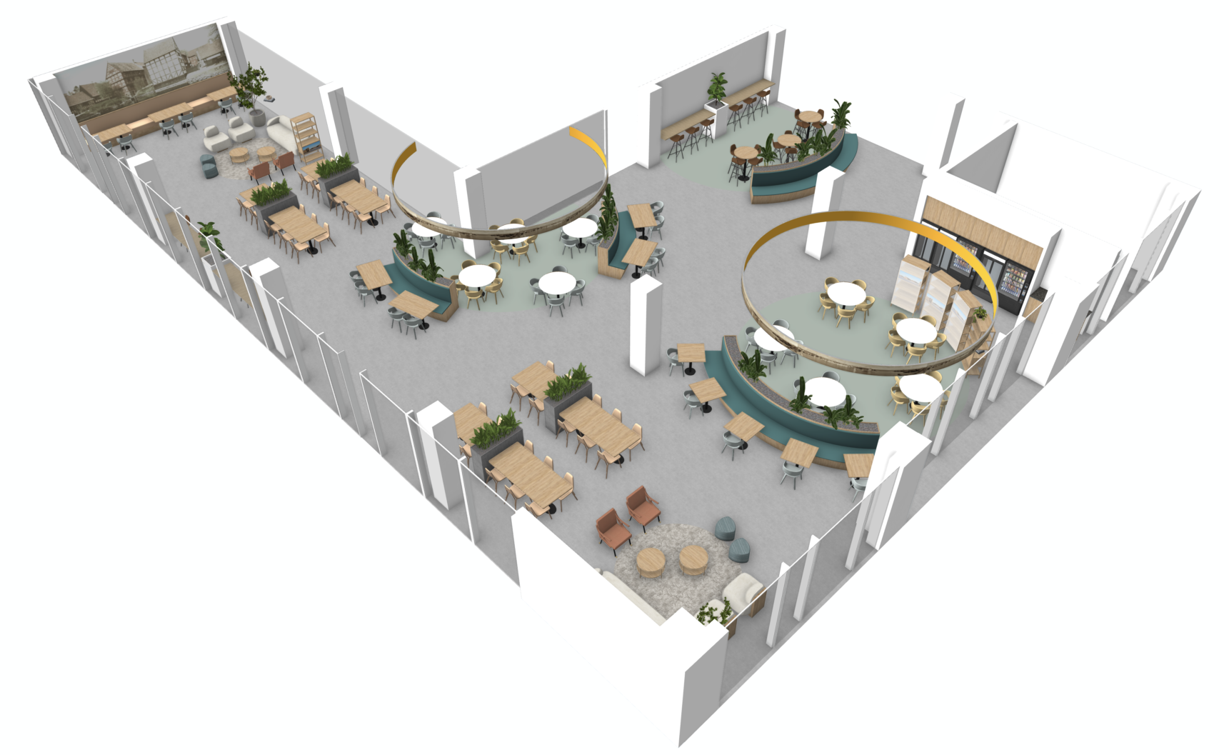 Voor een groot internationaal concern hebben we het interieurontwerp gemaak voor de kantine en de kantoren. Dit project is nog volop in ontwikkeling.